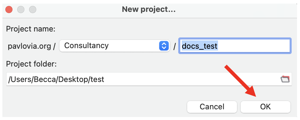 Give your project a name - do not use spaces of special characters. This will be the name of your project on Pavlovia.